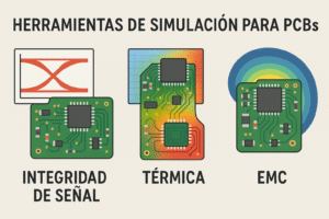 En este artículo revisamos los tipos de simulaciones más importantes en diseño de PCBs: integridad de señal, análisis térmico y compatibilidad electromagnética (EMC), además de las principales herramientas profesionales disponibles.
